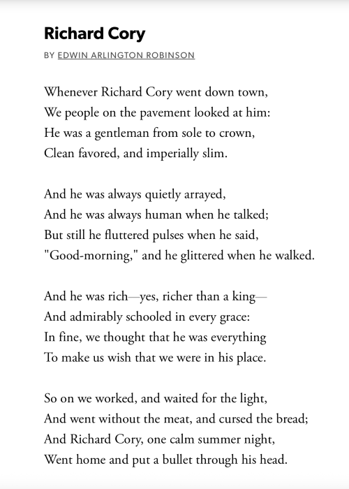 Robinson captured an essential truth about life as a sort of bell curve. A certain amount of material comfort raises ones spirits. The certainty of housing, the meaningful sense of one's self from a vocation, the ability to travel and provide for family, raise one's spirits. But after a certain point, the money becomes a sort of form of gravity so concentrated it leads to the unstable and extreme contours of a Black Hole. Anxiety. Depression. Envy. Rage. Madness. The happiness curve plunges down to a level not dissimilar to the grindingly poor. Both search for exits.